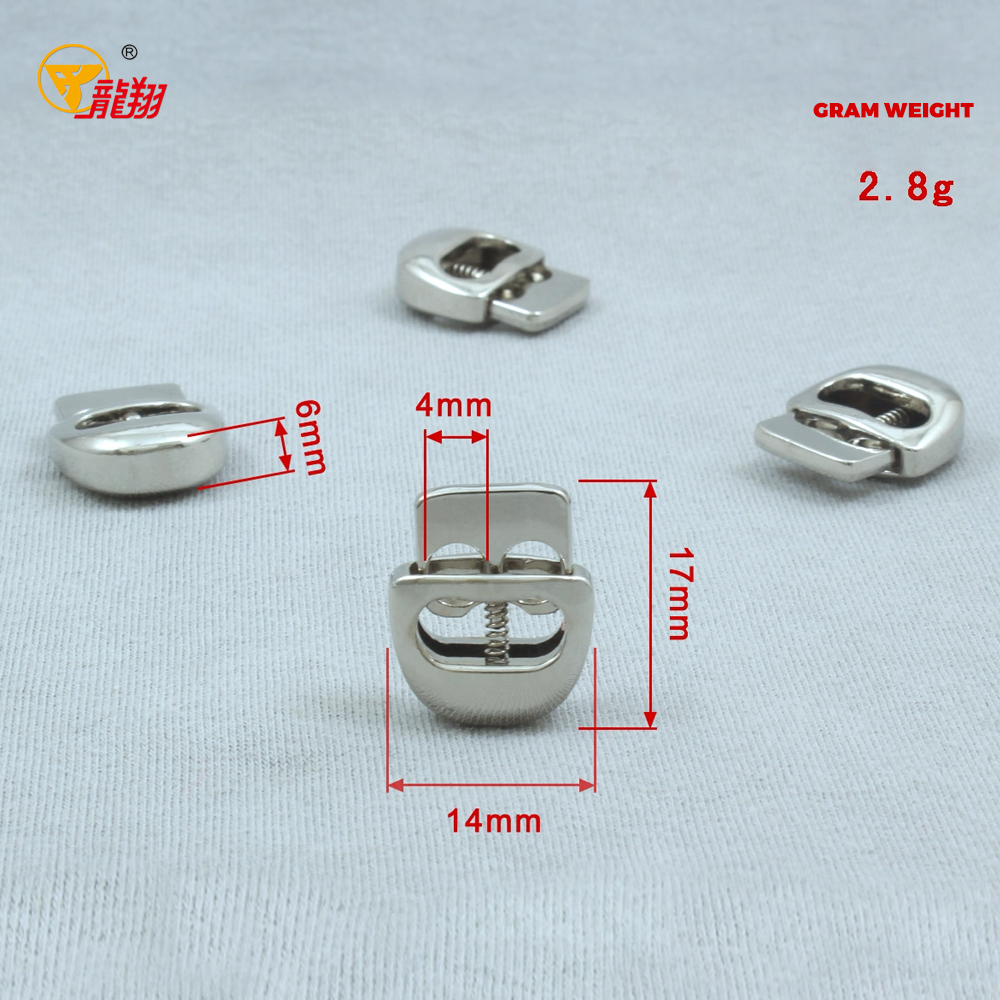 Shishi Longxiang Hardware & Plastic Products Co., Ltd., un fabricante profesional con más de 30 años de experiencia en accesorios para prendas de vestir y accesorios para equipaje , ofrece a los clientes globales un candado con cordón de resorte de doble orificio de metal ovalado de alta calidad para prendas de vestir . Este candado ovalado con cordón de resorte metálico de dos orificios es un accesorio básico para chaquetas de exterior, mochilas deportivas, calzado informal y otros escenarios. Con una apariencia ovalada suave y una estructura autoblocante de resorte de doble orificio, puede ajustar dos cordones simultáneamente, lo que permite una fijación rápida y un control preciso de la estanqueidad, combinando durabilidad y sentido del diseño.